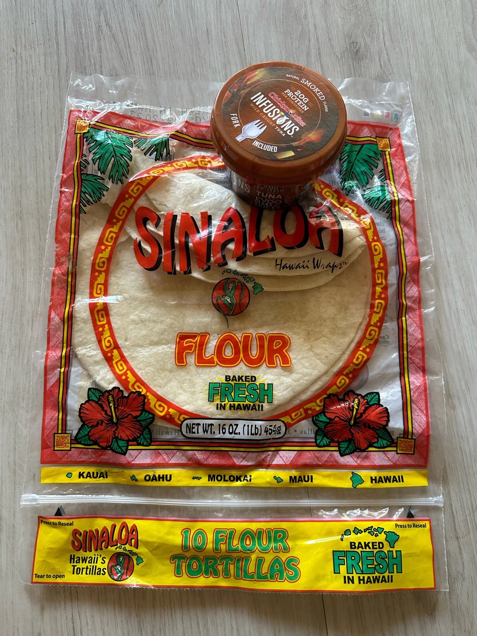 We brought everything for the hike with us on the plane including our hiking poles(which we had to check last minute, they're a bit too stabby for the main cabin), mini stove, meals, and backpacking bags to carry it all in. We just needed a few extra items like Cliff bars and Molly's tuna and tortilla recipe so we strolled over to Foodland. You get desperate to save weight on hikes like this so you just need high protein and lightweight nutrition, everyone has their favorites, this one I'm still a little bit meh on. It's a tortilla and any flavor of chicken of the sea you can find, hopefully not just plain, we found some fire-roasted chili and garlic & herb. Foodland also has spam musabi(it grows on you and it's a great snack) and the best/cheapest poke on the islands so we grabbed some bowls for dinner for the evening.