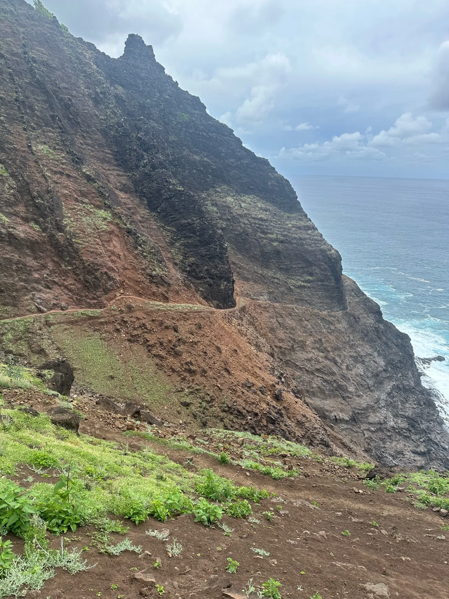 Crawler's ledge is a half-mile section of the trail where the trail is anywhere from about six inches wide to maybe a foot. One side of the trail is a 400-500 foot drop straight into the ocean, the other side is just a sheer rock wall or maybe some loose red dirt.