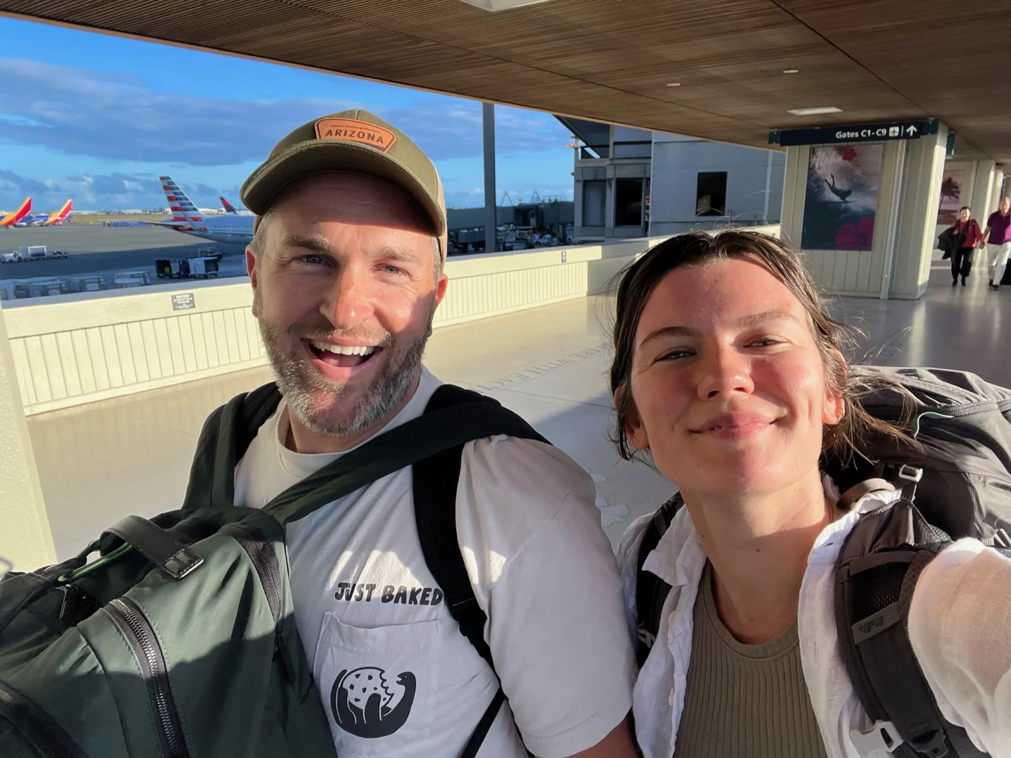 Bags packed, boots on, we head down to the front of the hotel to grab our taxi just a few minutes before 6:15am. No taxi yet, but that's fine, a lot of things run on island time and we gave ourselves a 20-minute buffer to catch the shuttle. 6:30 rolls around, still no taxi, we try ordering an Uber which just sits there looking for a driver. 6:40 and we decide to walk out to the main road, we're going to have to try and hitch a ride out to the shuttle stop. I leave the Uber request open on my phone while we walk out to the main road, it's one road that basically dead-ends a little ways past the shuttle stop, it's a road to one place basically. It should be fine, we just didn't want to rely on it. We practice our best thumbs-up game while we walk along the main road for a bit and luckily it only takes about 10 minutes for some generous souls to scoop us up. And these two were great, Matt and Erin from Seattle out here doing a portion of the hike we're doing and going to the same shuttle stop. We got to know them a bit on the way into the hike and talked about Hawaii, it was pretty great and we were so thankful to get scooped up.