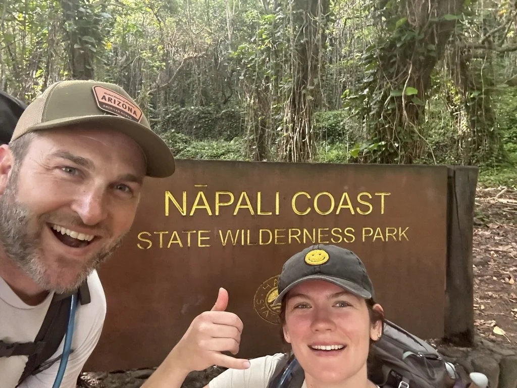The reward for the hike isn’t a summit but an isolated beach that can only be accessed via this trail. To camp on the beach at the end of the hike you have to get a permit and they only have something like 10-20 per day and you can reserve them 90 days out. Once we figured out the dates we were shooting for, we marked that 90th day out to prep. When that 90th day came we woke up and tried to book them but everything was already taken, ok so they go pretty quick, noted, and we lost our initial dates. After some research we found out that the slots open up at midnight Hawaii time which means a lovely 3am Phoenix time. So that night we go to bed snuggled up to our laptops and alarms set for 2:55am in the morning. The preparation worked and we groggily snagged two permits at 3:01am which meant the hike was officially happening, yay!