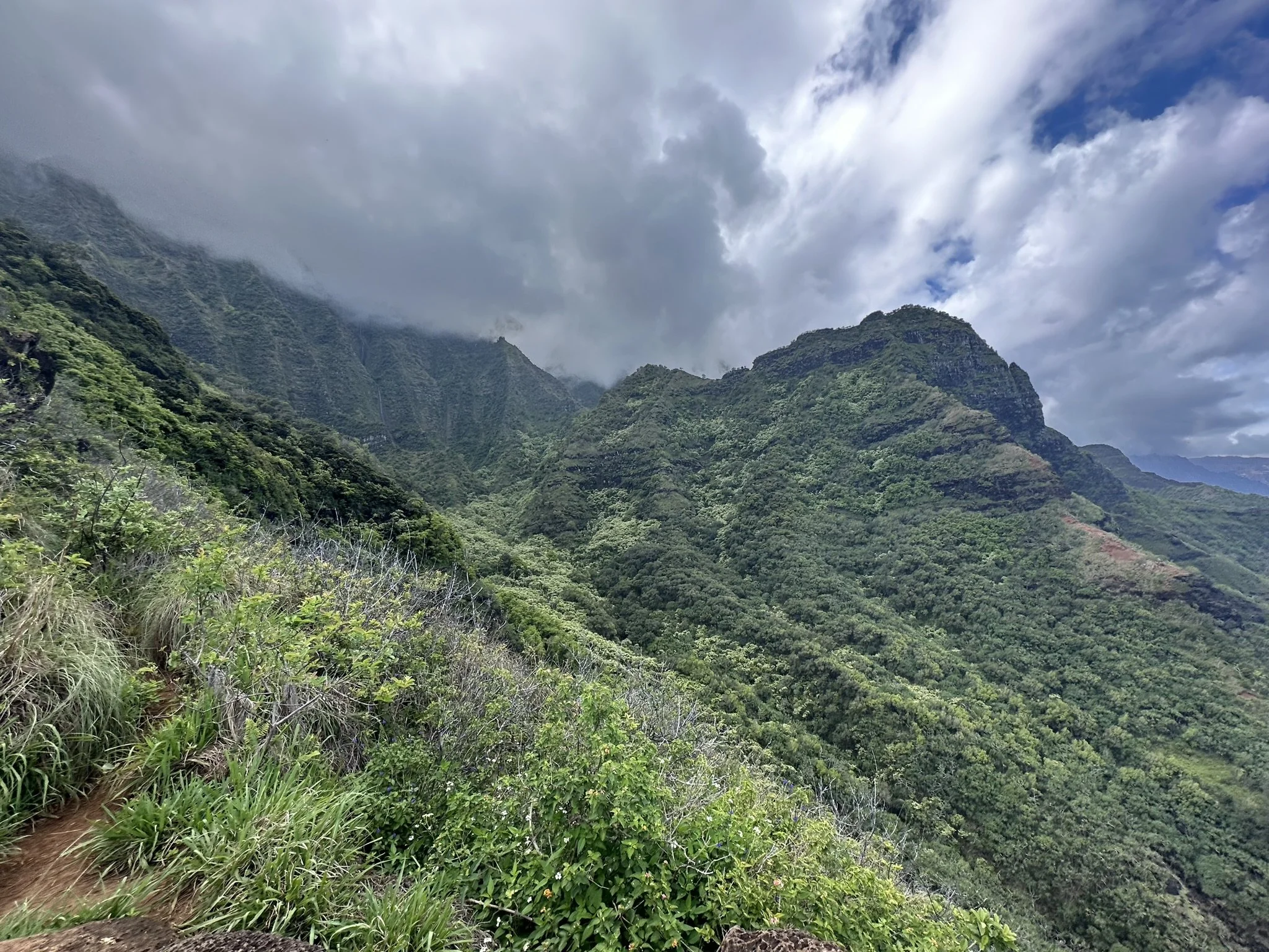 Hiking in Hawaii is something else. We’ve done a few other long hikes in Hawaii like Stairway to Heaven and Kuli’ou’ou Ridge which helped us prep for this hike. The mud here is lose your shoes thick, the trails are usually a bit overgrown, and there's always a swampy section but it's all made up for with the amazing scenery and views you get.