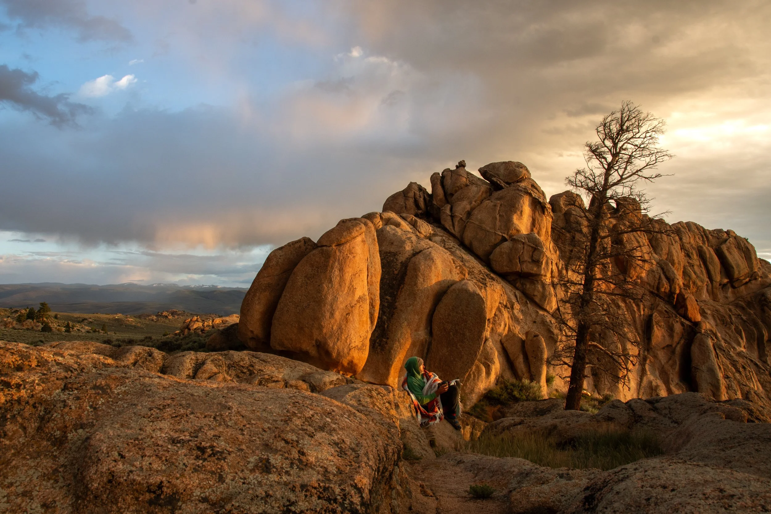 From Ouray, we set out for Gunnison. We first visited this spot in 2021 for a short one-night stay in the van and swore we'd be back. It's a high-desert area with views of the snowcapped peaks to the north and hundreds of miles of trails. It has the boulders of Joshua Tree with the long-range views of the Rockies. We didn't get as much biking in here as we'd hoped (our first day of bad weather), but we did get a sunrise complete with a rainbow.
