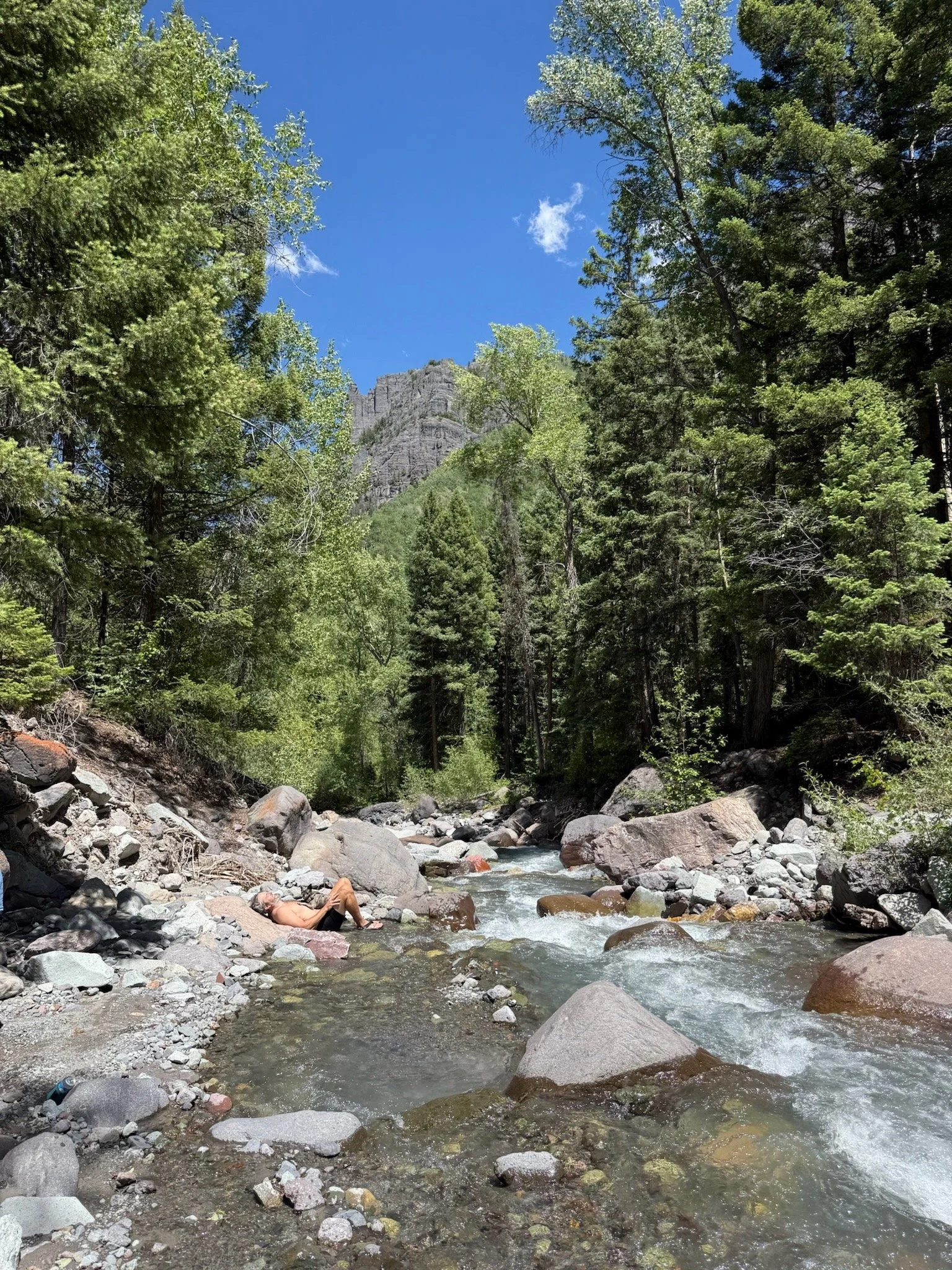 We, too, moved along quickly and continued on the "Million Dollar Highway" to Ouray, a picturesque town nestled among the mountains. We enjoyed a burger and a beer, did a bit more grocery shopping, and set out to find camp. We spent the next two nights in the canyon beside nature's perfect noise machine.